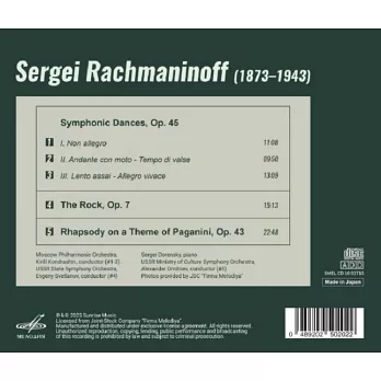 Rachmaninoff: Symphonic Dances, The Rock, Rhapsody on a Theme of Paganini / Sergei Dorensky / Kirill Kondrashin / Evgeny Svetlanov/ Alexander Dmitriev / Moscow Philharmonic Orchestra / USSR State Symphony Orchestra / USSR Ministry of Culture Symphony Orchestra
