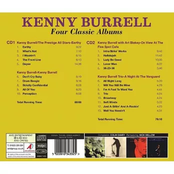 ★ CD 1 收錄 Prestige 時期加入全明星陣容發表的 The Prestige All Stars《Earthy》,以及由他領銜的《Kenny Burrell》。CD 2 則包含 Kenny Burrell 和 Art Blakey 共演《On View At The Five Spot Cafe》,與 Kenny Burrell Trio《A Night At The Vanguard》等兩張現場錄音專輯
