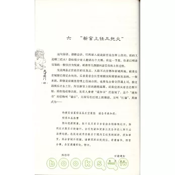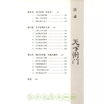 京官擺不得、地方小官卻擺得的大排場;「黃史要錢,御史不要錢」、「太太愛錢,老爺不愛錢」的微妙;為官不得罪於巨室、「任你官清如水,怎敵吏滑如油」的利害博弈;定戶等、派徭役,賊開花、官司錢,無處不有的盤肅百姓大法;陋規常例、賑災財、募捐款,各色吃皇糧人等的諸般好處;以及八字牆上的「聖諭」宣講和花邊新聞,節日舞會、工作餐、機關宿舍里河東獅吼之聲相聞的生活細節,以身材相貌來「大挑」州縣官員的奇特面試法,戒石坊、養廉銀乃至將貪官肅皮制成標本等用心良苦的廉政建設。