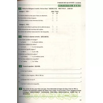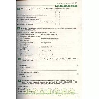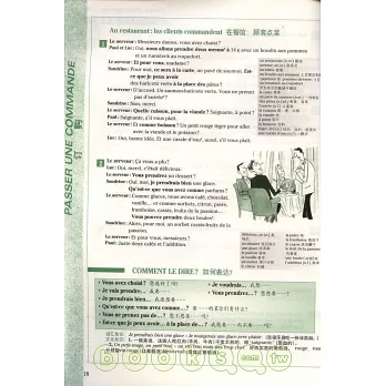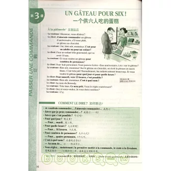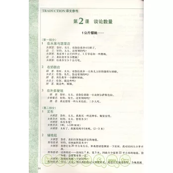 在編寫過程中,作者根據學練結合的原則,提高學生學以致用的能力,在每段對話後安排了與課文內容緊密結合的閱讀理解練習、增強學生交際能力的舉一反三型練習和提高讀者興趣的角色創造造型練習。為了幫助中國讀者,尤其是初學者 或對法語交際口語不很熟悉者更好地理解課文,所有的對話都配有參考譯文,使讀者開卷得益,學有成效。