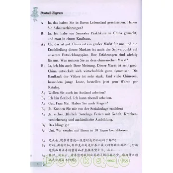 本教材由中德語言專家共同編寫、審訂、錄制完成。內容以日常交際語言為主,以德國的國情和文化為背景,由淺入深,循序漸進,語言實用有趣,富有時代氣息,非常適合零起點的初學者使用。