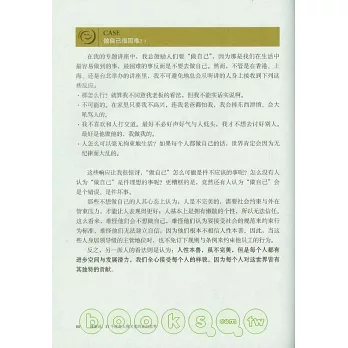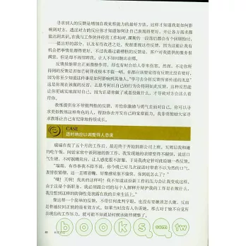 當您試著用不偏執、不評斷的心情用心再三閱讀,您會突然發現,您就是書中的案例,因此您也可以從案例中找到笞案及工具。這是一本會改變您態度的經典書,也是您書架上永遠有實用價值的一本收藏參考書。