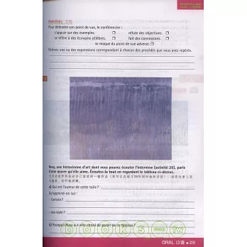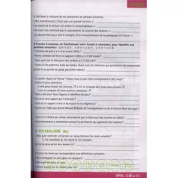 為法語國家對外留學生升學語言考試而編著的一套法語標準參考練習系列。該系列練習共有六種,分別與《歐標》所劃分的六個級別相對應。此B2級別的練習分成口語訓練和筆頭訓練兩大部分,而每一部分都按學習進度安排語言訓練,提高和測試理解能力、表達能力和互動能力,使學生進一步鞏固所學的知識。