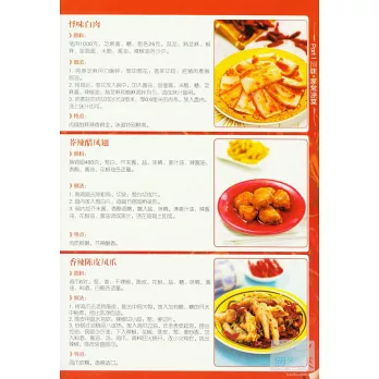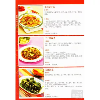 本書約請著名川菜大廚主持編寫,精心選編火爆流行川菜約400例,按原料細分家常涼菜、經典小炒、豬肉、魚類、小海鮮等11大類,每道菜式均配精美彩圖,按步驟詳細講解,便于讀者學習操作,是物美價廉的川菜烹飪寶典。