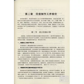 本書主要介紹了印刷生產的工藝流程、印前制作工序核價、生產準備工序核價、印刷生產過程的計算、印後加工工序產生的價格、包裝印刷品各個後工序的價格等內容,系統性和科學性強,每一章節後均附有習題和相應答案,以便學生鞏固與提高,操作性強。
