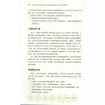 人性主導了投資市場極重要的一環,了解投資者心理的來龍去脈,自然就能理解投資市場的脈動!作者認為“從眾心理”必然會給投資者帶來災難性後果,要想在股市中獲利,必須要有獨立于大眾的思考與判斷,作者在書中提出了擺脫大眾壓力的求勝法則。