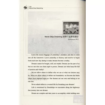 優美文章可以陶冶情操,勵志故事可以振奮人心,相信這套簡單卻深刻的雙語閱讀材料。會成為你最棒的英語學習導航。