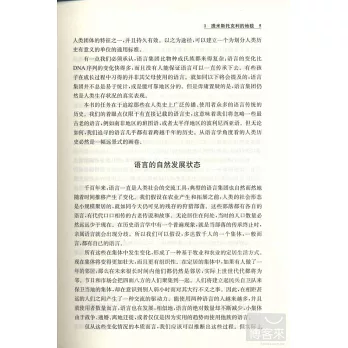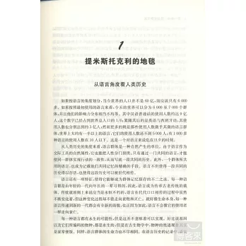 本書將追溯那些在已知人類歷史中最為廣泛傳播的語言的歷程。出于種種原因,通過某些方法,隸屬于這些語言集團的人們能夠說服其他人加人自己的團體,從而使之發展壯大。這樣做的動機可謂五花八門,包括軍事統治、獲取財富、宗教變革、進人寄宿學校、服軍役以及其他許多理由。但是歸根結底,說服別人是一種語言得以擴張的唯一途徑,而且只要是嘗試過主動學習其他語言的人都知道,這絕不是件容易的事。