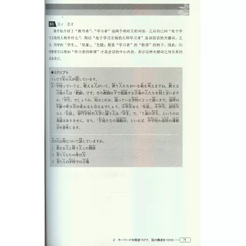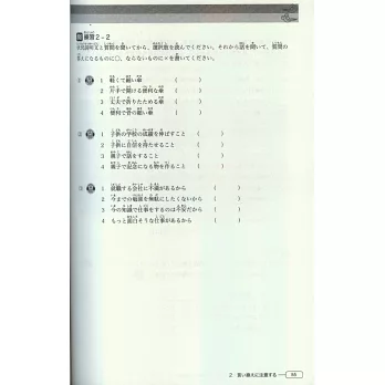 本書的特色:1.介紹每一類題型的解題技巧;2.通過分階段地學習各類題型的解題技巧,輕松提高學習者的聽力能力:3.通過豐富的練習,使學習者能熟練解答新日語能力考試的各類題。