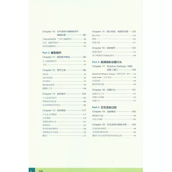 重在按照Step by Step的形式講解渲染過程,因此SketchUp用戶將會學到渲染各種不同類型SketchUp項目(包括建築設計、室內設計和場地設計模型)的通用方法。全書詳解SketchUp建模與渲染技術,以及使用集成渲染程序創建三維逼真效果展示圖,講解重點在於極具真實感的渲染核心任務和原則,包括繪制過程與工作流程;了解這個過程可以用於各種不同的集成渲染方案,包括Shaderlight,SU平台和燈光渲染;探索如何獲取、應用和編輯代表表面的紋理圖像;了解如何獲得和組織模型細節;設置外部照明模擬燈具照亮一個場景;使用特定的渲染程序快速設置紋理特征,輸出圖形;如何在Photoshop中進一步優化渲染圖像。