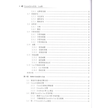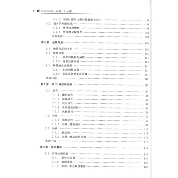 是介紹Cocos2d—xLua游戲編程和開發技術的書籍,介紹了使用Cocos2d—xLua中核心類、瓦片地圖、物理引擎、音樂音效、數據持久化、網絡通信、性能優化、多平台移植、程序代碼管理、兩大應用商店發布產品。全書分為六篇:基礎篇、進階篇、數據與網絡篇、優化篇、跨平台移植篇和實戰篇,共23章。基礎篇包括第1~8章,分別是Cocos2d—xLua介紹、環境搭建、標簽、菜單、精靈、場景、層、動作、特效、動畫和用戶事件。進階篇包括第9~12章,分別是游戲音樂與音效、粒子系統、瓦片地圖和物理引擎。數據與網絡篇包括第13~15章,分別是數據持久化、基於HTTP的網絡通信、Node.js與WebSocket網絡通信。優化篇為第16章,主要介紹性能優化。
