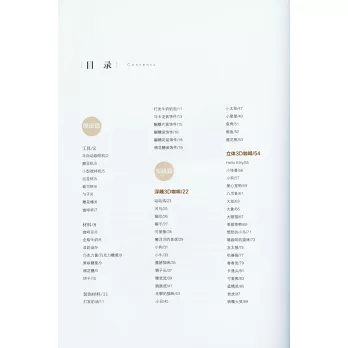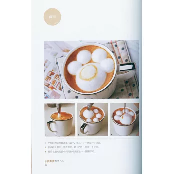 匯集了100款3D咖啡作品,包含了以奶泡為基礎構建的浮雕、立體咖啡和以棉花糖、翻糖、蛋白餅、馬卡龍、奧利奧餅干為輔助裝飾的唯美咖啡。3D咖啡精致動人、創意無窮,要求制作者具備豐富的想象力和精湛的技術,二者缺一不可。