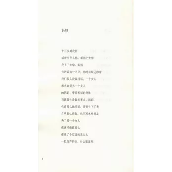 對大多數人來說,尹麗川是2000年中國「下半身詩歌」風起雲湧浪潮的代表性詩人之一,其生猛直截的文字、毫不扭捏造作的態度,是令許多人一讀眼神便無法移開的近乎生理性反應。但之於我而言,尹麗川的不同之處,不僅在於她的題材或切入角度,她那犀利釘在直覺抽象性與現實物事之間的微妙描摹能力,才是 more溫馨提醒您:若您訂單中有購買簡體館無庫存/預售書或庫存於海外廠商的書籍,建議與其他商品分開下單,以避免等待時間過長,謝謝。