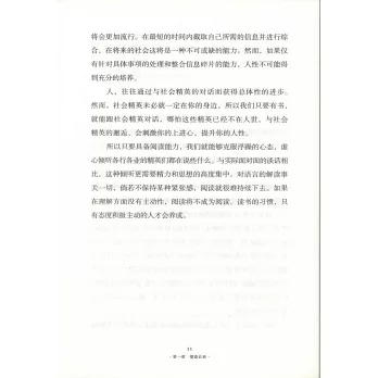 透析閱讀的本質意義,探尋閱讀給人生的力量。讀書的意義究竟在哪裡?如何能提升閱讀能力?提升閱讀興趣,有哪些途徑可以借鑒?閱讀力跟人際交往能力有何關聯?跟隨本書,我們一起來層層深入地探討:自我形成所必須的閱讀——塑造自我;讀書作為一項體育運動——錘煉自我;讀書是交際能力的基礎——拓展自我。最後在附錄部分,作者將提升人生境界及能量必讀的一百部圖書,擇其精要,呈現給讀者。