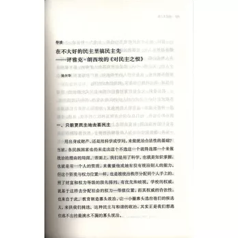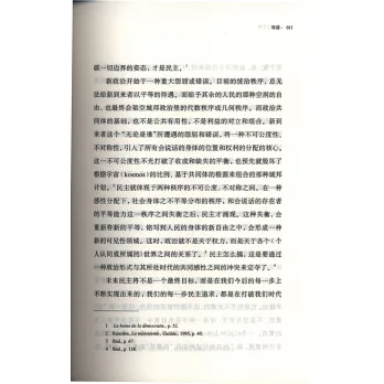 一名年輕女子利用她捏造的襲擊事件讓法國陷入了焦慮;一群青少年拒絕在學校取下他們的頭巾;社會保障不斷出現赤字;在大學課本中,孟德斯鳩、伏爾泰和波德萊爾取代了拉辛和高乃依;工薪族們舉行示威游行以捍衛自己的退休保障計划;某所精英學府創立了一個不尋常的學生錄取計划;電視真人秀、同性婚姻和人工受精日益流行。想找出讓這些性質截然不同的事件集中起來的原因是毫無意義的。一本又一本的書,一篇又一篇的文章,一個接一個的方案,數以百計的哲學家和社會學家、政治學家和精神分析學家以及記者和作家們已經給我們作出了回答。他們認為所有這些症狀都是同一疾患的表現,造成這些影響的原因只有一個,這一原因叫作民主,或者說是在現代大眾社會中處於統治地位的個體的無限欲求。