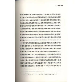 在這個左派失去了方向的時代,朗西埃的著作給我們提供了一系列少見的持續不斷的關於如何繼續抗爭的概念。