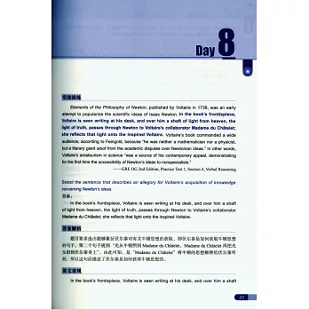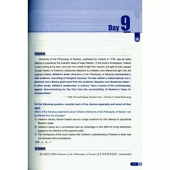 准確翻譯句子,給出翻譯答案,學生可參照答案檢驗自己對句子理解是否正確。精析長難句句型,講解考試常考語法,根據本句子進行擴充講解考試考點及常用句型,可應用於GRE寫作。選擇解析句子對應真題題目,學生可將所講知識應用於題目當中。