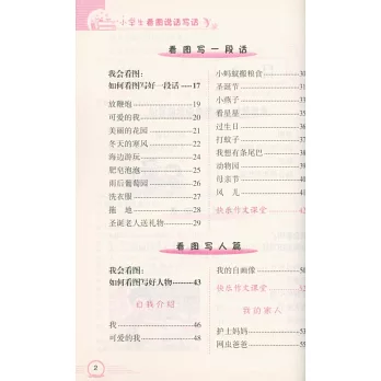 針對低年級學生作文起步的特點,引導學生看圖說話寫話,以說好一句話為基礎,寫好一段話為目的,幫助學生順利地把一句話、一段話落實到筆頭,寫出一句、一段完整的話,最終達到順暢的看圖說話寫話。本書涵蓋小學生看圖說話寫話的各種問題及解決方案,適用於各個主流版本的作文教學與學習。幫助學生准確把握圖畫內容,准確敘述圖畫要點,並能寫出結構完備、內容豐富的作文。