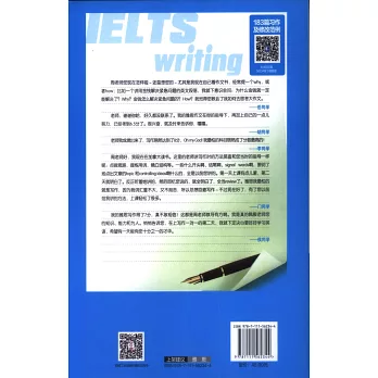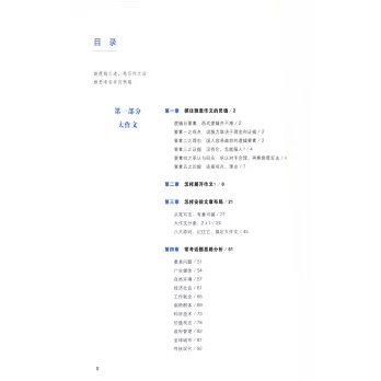 本書根據雅思考試的性質,把寫作部分分為學術類、移民類,分別闡釋大作文、小作文、書信。1、大作文先系統講解西方的思維邏輯,再每講針對不同話題,詳細從題目、范文、修改、延伸閱讀等各方面展示大作文的脈絡;2、小作文注重分析考官范文的邏輯思路;3、書信分類講解不同類型書信用到的語言、結構等。讀者既能從本書中學習到寫作背后的邏輯,也能收獲大量地道的語言表達,可以直接用到作文中;4、如果有計划地學習,每天閱讀一講,3周即可學完,從而實現增分的目標。