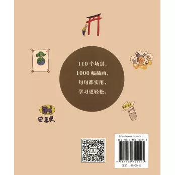 本書包括日本人日常生活起居、學習工作、旅游外出等多個方面,共7個單元,110個場景。每個場景再包括5—15個獨立場面,共1000余個。這些獨立場 面以一句話來描寫,每句話都配以全彩漫畫形式插圖,生動活潑,形象地反映了日本人日常生活的真實面貌。適合中初級日語讀者學習。同時,每個場景還配有關鍵 字詞專欄。