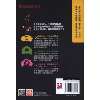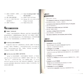 全書對話采用中英對照的形式,可以擋住英文部分,利用漢語內容進行語言練習,會話中精選各類英文傳統文化小常識,學習者可以在小常識專區了解地道英美文化、語法解析、實用短語等。此外本書還精選了老外聊天話題TOP10,加碼附上高頻句子,並視情況補充可替換單詞,深入淺出地介紹該話題對老外的重要文化涵義,是一本內容充實,編排合理的英語學習書。