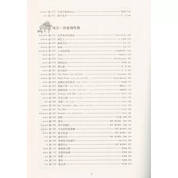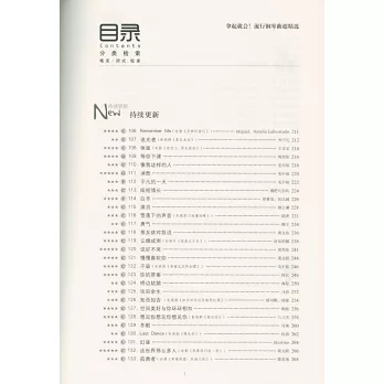 包含122首編曲精緻、難度較低、風格多樣的優質流行鋼琴曲,分為“影視原聲”、“民謠故事”、“流行有範”、“純音·治癒鋼琴曲”四組分類,並配套視頻示範,MP3下載、流行譜曲推送等線上增值服務。