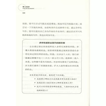 零工經濟中的工作並不總是,甚至大部分都不是一份工作。為了享受好工作帶來的福利,我們不再需要只為一個雇主做一份提前安排好、定義好且結構嚴苛的工作了。在零工經濟中,我們可以不用再找好工作了,只要專注於找到好的工作內容就行。