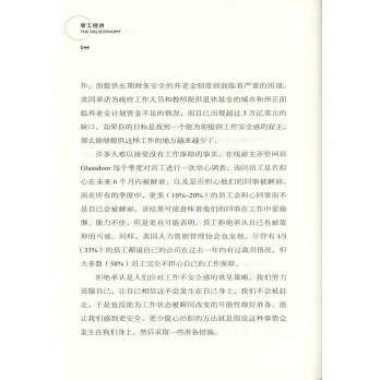 中層管理者和拿「死工資」的企業員工似乎不是零工經濟的勝者,他們的技能需求量少,也更容易被機器自動化、外購或外包代替。也許他們正被懸掛在自己所攀爬的搖晃不定、殘缺不全的職業階梯上,或是心神不寧地死守着自己已經成功找到的全職工作。這些人的收入停滯不漲,福利也正在萎縮,而他們卻慢半拍,難以接受自己已經失去了工作保障的現實。於是,他們在全職工作中努力求生,而一旦失去工作便會舉步維艱。