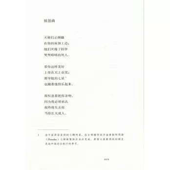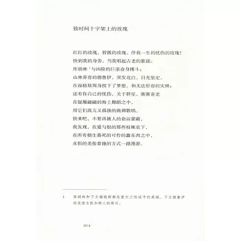 譯者羅池,原名韋政峰,翻譯家,詩人,1973年生於廣西柳州,1996年畢業於廣西大學中文系,現居廣西桂林。2000至今專事文學翻譯,主攻英語現當代詩歌、短篇小說,兼譯法語、荷蘭語等,有大量作品發表,近年致力於詹姆斯.喬伊斯名著《芬尼根守靈夜》譯釋工作。已出版譯著:《格雷戈里.柯索詩選》《彼得.霍恩詩選》。