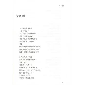 《海子詩集:面朝大海春暖花開》系中國當代優秀詩人海子的詩集,收錄了作者詩歌作品一百多首,其經典篇目有《面朝大海,春暖花開》《亞洲銅》《以夢為馬》等。本詩集旨在使廣大青少年輕松快捷地閱讀經典作品,在潛移默化中提高素養、陶冶性情。