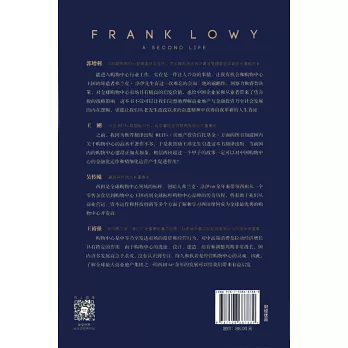 現在,年近九旬的弗蘭克依然沒有停止工作。自2000年他的極為暢銷的個人傳記《超越極限》出版至今,他一直在奮力前行,而不是選擇隱退。作者將《超越極限》壓縮為這本書的*部分,稱之為弗蘭克•洛伊的“*生命”,而2000年之後他的晚年生活則被稱為“第二生命”。事實上,弗蘭克•洛伊在他的“第二生命”中的收穫比之前的更多。