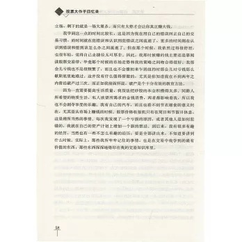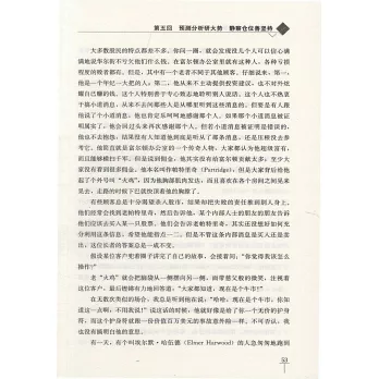 “股票大作手”是指傑西·利弗莫爾(書中化名為拉裡·利文斯頓),他是美國股票交易史上的傳奇人物,被稱為“著名的華爾街大空頭”“百年美股第—人”“舉世公認的投機天才”。在49年的股票投資生涯中,他創造性地發明了一套交易原則,這些原則是在充滿不確定性的股票市場中的制勝法寶。利弗莫爾坦承自己之所以遭遇了慘痛的失敗,正是因為沒有遵循這些原則。本書記述了利弗莫爾的傳奇人生和交易原則,並迅速成為美國商業書籍的典範。