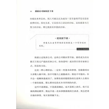 在創業創新浪潮的激蕩下,幾乎每天,都有新企業註冊成立,同時也有很多企業黯然消失。成功者告訴我們,創業成功其實九死一生,在披荊斬棘的路上,每一個創業者都傷痕纍纍。連續成功創業者邁克爾·奧爾登從自己的經驗出發,總結出了一套創業企業生存的方法論,不管是每天多做5%的執行哲學,還是如何繞過陷阱、規避風險的錦囊,都能幫創業者在創業之路上走得更穩和更遠。