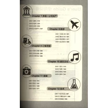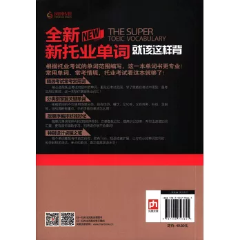本書根據托業考試中單詞的使用場景共分為12章,每章分為若干單元,單詞與單元主題密切相關,方便聯想記憶。每單元按照從A到Z的順序排列單詞,並有相應的中英文例句及Tips、片語、擴展等,手把手教你掌握單詞用法。所有單詞都是根據托業考試範圍設置,更貼近考生需求。單詞涉及了托業考試的各個方面,這本書能夠幫助你增加詞彙量,提高英語水準,助你托業考試取得滿意成績。