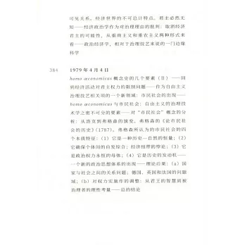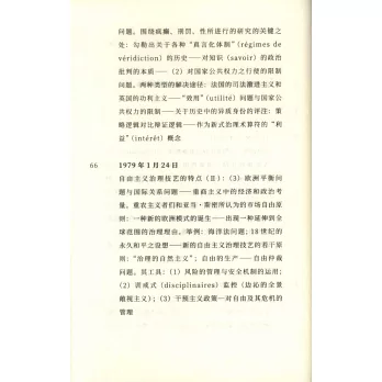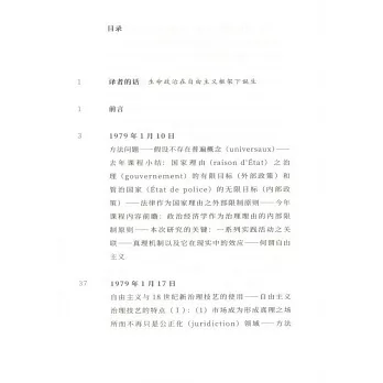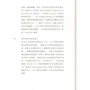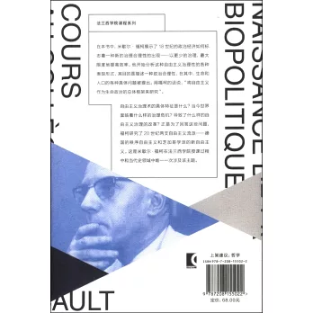 傅柯藉由開啟生命政治的鬥爭歷史、解構被權力話語所復述的主流論述,點出當代社會新自由主義的實質問題,文中處處可見龐大的野心。從十七-十九世紀末西方政治哲學歷史的梳理、再現那些被主流歷史給排斥的話語,被遺忘收編的喃喃瘋狂。