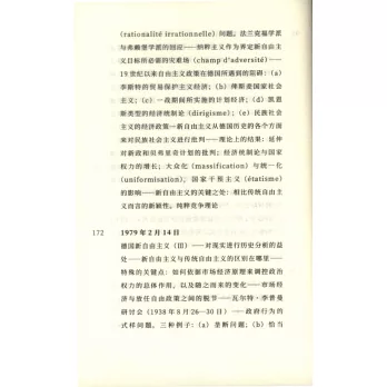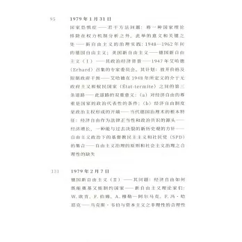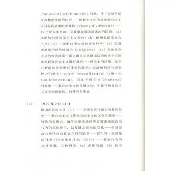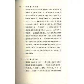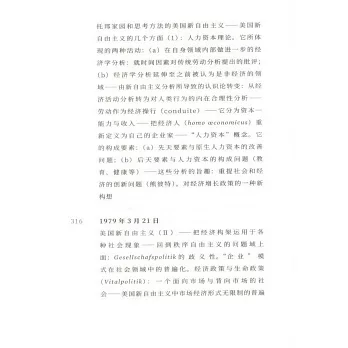 自由主義治理術的具體特徵是什麼?當今世界面臨著什麼樣的治理危機,導致了什麼樣的自由主義治理的改革?正是為了回應這一診斷任務,福柯研究了20世紀兩支自由主義流派——德國的秩序自由主義和芝加哥學派的新自由主義。這是米歇爾.福柯在法蘭西學院授課過程中和當代史領域中唯一一次涉及該主題。