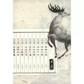 本部《天寶伏妖錄二·九色鹿》為《天寶伏妖錄》系列小說的第二卷,主要講述西北邊陲連發突襲、屠城事件,李景瓏、孔鴻俊奉太子手諭前往調查,激戰戰死屍鬼,驅逐異勢力,浴血護國的故事。