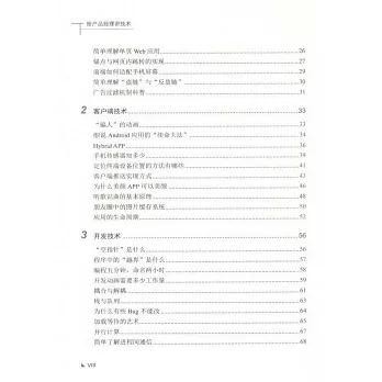 本書專為非技術背景的互聯網行業從業者和想了解互聯網技術的人員量身定製,分門別類地整理了Web前端技術、客戶端技術、開發技術、網路技術等章節,基本涵蓋了當前互聯網行業的所有垂直技術領域。為了讓讀者能夠更好地理解技術的精髓,幾乎每篇文章都配以現實生活中通俗易懂的例子,用於類比複雜的互聯網技術原理。在最後的「溝通」章節,作者介紹了根據自身近10年工作經驗總結出的一些非技術人員與技術人員的溝通技巧,相信對讀者的工作會有一定幫助。