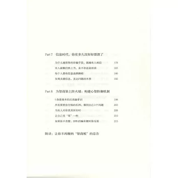 越是看似免費的東西,越會讓你付出昂貴的代價。心靈雞湯式的說教為什麼總能成功?為什麼你總是被說服的那個人?快速成功法則為什麼有市場?為什麼越低級的騙術,越有人相信?有些很普通的觀點,為什麼能感動你?這一切都是因為我們的心智防禦機制出現漏洞,以致很大概率會交上一筆「智商稅」。閱讀本書,你將全面了解信息焦慮時代的各種智商陷阱,並學會破解方法,進而做出正確的決策,減少自己的損失。