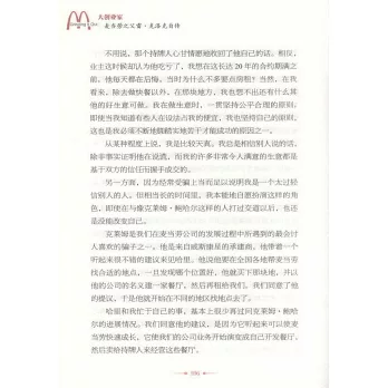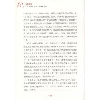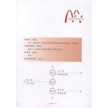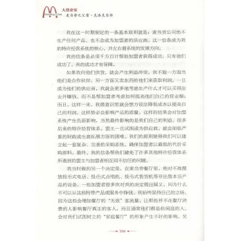 恰逢麥當勞進駐中國30周年,中國大陸第一家麥當勞餐廳第1任經理陳寅先生精心翻譯,將本書作為獻禮之作,希望將克洛克的企業家精神發揚光大。