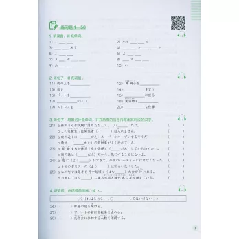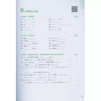 Part3含2回原汁原味的模擬試題,幫助讀者體驗真實的日本語能力考試。