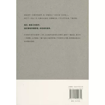 社科院社會學學者“潛伏”三和,歷時半年,完成了這份20多萬字的研究筆記,並配有幾十幅圖片。採用白描式研究手法,還原三和青年生存處境,全景式展現“90後”和“00後”農民工流浪三和的生活,打破大眾對這一群體的刻板印象。以點窺面,瞭解中國社會劇烈變革之下的城市化問題,探尋解決底層社會問題的進路。本書在突顯學術價值的同時,體現人文關懷和學界對社會現實、勞動者的關照。