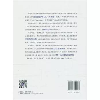 在《光刻巨人:ASML崛起之路》中,作者瑞尼·雷吉梅克帶我們重返了晶圓步進光刻機的誕生地,和我們一起探索了ASML在全球獲得令人矚目的成功之根源所在。作者通過回顧工程師們全力以赴超越對手的歷史,生動地給我們打開了一扇窗戶,使我們有機會看到孵化世界上很精密晶片製造技術背後那個獨一無二的企業文化:“贏者通吃”和“只爭金牌”,這些思想至今仍滲透在ASML的血液中。