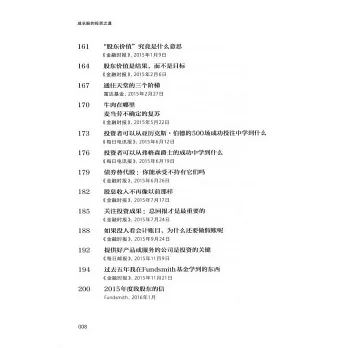以其標誌性的犀利、智慧,史密斯揭示了高品質公司是什麼樣的,如何找到它們(以及如何發現冒充者),同時闡明了:為什麼要淡化市盈率,看重已動用資本回報率;為什麼大多數股票回購實際上是破壞價值;為什麼不要嘗試市場擇時;投資的十大黃金法則;環法自行車賽對於投資的啟示;價值投資策略的缺陷……