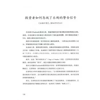 本書是英國備受歡迎的基金Fundsmith創始人、知名基金經理特里·史密斯的著作,包含了他2010—2020年的投資文集以及致股東的信。