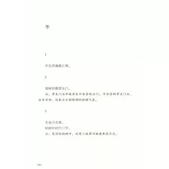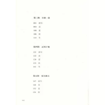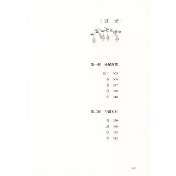選句多具有高度藝術性和鮮明個性,雅俗共賞,有繼承漢詩、和歌傳統的古典佳句,也有展現浮世生活的庶民詩,還有浪漫、感性而富有畫意的作品,展現了對萬物的靈敏感性。所輯以作者出生年代為順序,按日本俳句新年—春—夏—秋—冬四季的體行編排,選篇豐富,既有作者的代表作,也有不太為讀者熟知的妙筆。