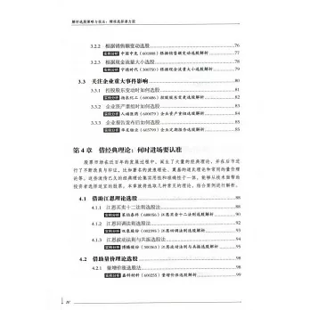 筆者從選擇優質個股的角度出發編著此書,書中分別從基本面和技術面兩大方向,對上市公司運營狀況和股票盤面走勢進行深入解析。具體包括基本選股邏輯、三大主要分類板塊的選股戰法、上市公司基本數據以及重大事項的分析、經典理論的使用方法、K線特殊形態的含義以及常用技術指標如何輔助選股等內容。書中實例豐富,註解詳細,比較適合剛入市場的新手投資者使用,幫助其實戰學習如何更準確地甄別股票的優劣,快速篩選出可操作的潛力股。此外,書中內容同樣也適合有一定經驗的投資者參考。