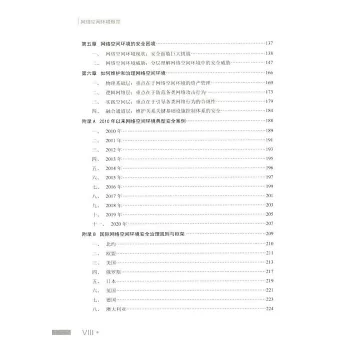 本書共分為六章,第一章是認識網絡空間環境,從歷史維度闡述了網絡空間的產生和發展歷程,網絡空間環境概念的形成以及研究網絡空間環境的學術意義與現實意義;第二章是網絡空間環境對世界的影響,網絡空間是一個嶄新的生存環境,它的影響是方方面面的,本章從政治、經濟、文化和軍事四個方面入手,分析闡述了網絡空間環境對世界的影響;第三章是網絡空間環境的特點與構成,作為一個新生事物,我們從物質基礎、存在形式、運用模式、行為主體和溝通互聯等幾個方面,闡述了它的特殊之處,同時也從不同維度展示了它的構成和指標;第四章是網絡空間環境的構建及技術保障,作為一個不同於現實環境的虛擬空間,如何讓它可視化、具象化,是進一步理解、運用網絡空間環境的重要技術,本章從技術角度出發,給出了解決方案;第五章是網絡空間環境的安全困境,作為"第三環境”,網絡空間環境如同自然環境遭到破壞、社會環境出現動蕩一樣,網絡空間環境也日益面臨各式各樣的安全挑戰;第六章是如何維護網絡空間安全,本章從物理層面、技術層面和治理層面,給出了維護網絡空間環境整體安全的思考。