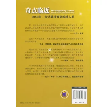 Ray在2005年出版”the Singularity is near”(即本簡體書「奇點臨近」,沒繁體中文版)預測了人類奇點將於2045年來臨,經過快二十年的現實檢驗下,他似乎為了「再出一本書」(賣錢)而硬擠出來的續作”the Singularity is nearer”(今年繁體中文版翻成「奇點已近」,去年簡體中文版翻成「奇點更近」)狗尾續貂,缺乏實質突破。
