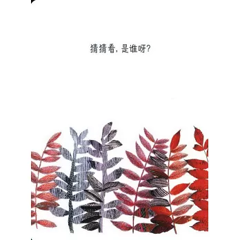 叢林里的小動物又聚到了一起,它們又玩猜猜看的遊戲。小動物用樹葉遮住臉,然後問大家:“猜猜看,這還是誰呀?”動物一個個取下葉子,露出了面龐,原來是兔子、野豬、熊、松鼠和蜥蜴。最後,有一個奇怪的動物用樹葉遮住臉,大家怎麼都猜不對。原來,可愛的小狗!